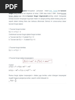 Pengertian Turunan Fungsi Aljabar Pdf from imgv2-1-f.scribdassets.com Check spelling or type a new query. Maybe you would like to learn more about one of these? We did not find results for: